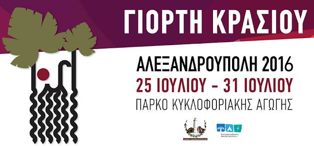 Η ΤΙΕΔΑ Α.Ε. σε συνεργασία με το Δήμο Αλεξανδρούπολης και την Ένωση Πολιτιστικών Φορέων Έβρου (ΕΠΟΦΕ) διοργανώνει τη Γιορτή Κρασιού 2016, στο χρονικό διάστημα 25 – 31 Ιουλίου στο Πάρκο Κυκλοφοριακής Αγωγής στην Αλεξανδρούπολη.