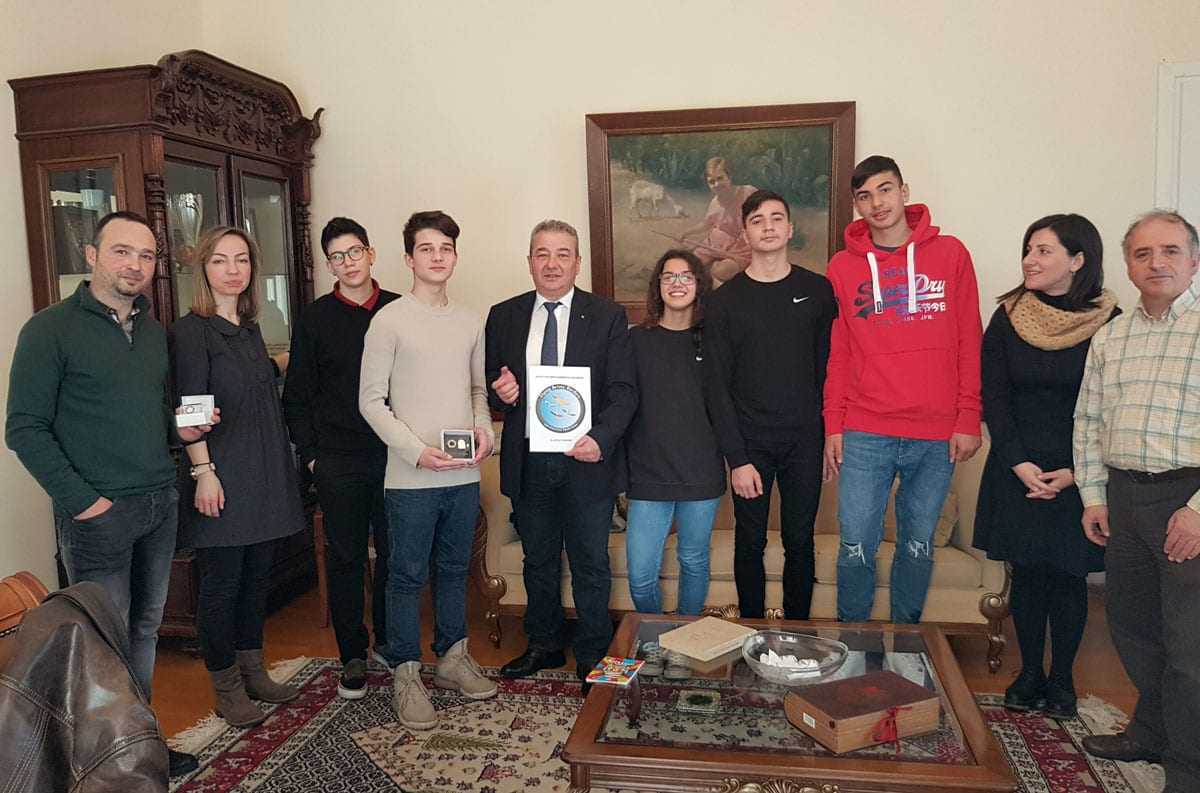 Οι μαθητές του 2ου ΕΠΑΛ Ξάνθης και ο μεγάλος νικητής Νίκος Γκόρδης που συμμετείχαν στον διαγωνισμό λογοτύπου του ευρωπαϊκού προγράμματος Erasmus+, επισκέφθηκαν τον Δήμαρχο Ξάνθης κ. Χαράλαμπο Δημαρχόπουλο την Πέμπτη 8 Φεβρουαρίου 2018 στο Δημαρχείο.