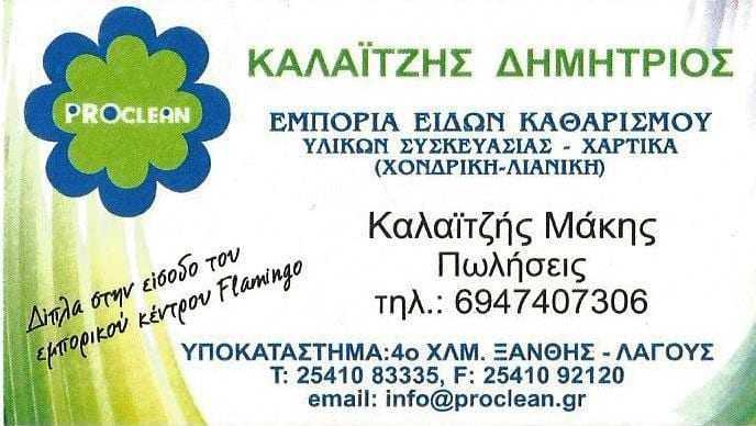 Μάκης Καλατζής. Ο μεγαλύτερος γιος του Δημήτρη, ένας νέος άνθρωπος, σε μία πολύ μεγάλη επιχείρηση της Ξάνθης που δραστηριοποιείτε στα υλικά συσκευασίας και αναλώσιμα που αφορούν τους χώρους μαζικής εστίασης όπως ταβέρνες , εστιατόρια, ξενοδοχεία καφέ μπαρ, μας λέει ότι οι παραδώσεις σε εκτέλεση των παραγγελιών, γίνονται από την ίδια την εταιρεία άμεσα και φυσικά η επιχείρηση δραστηριοποιείτε και στην λιανική πώληση των προϊόντων της.