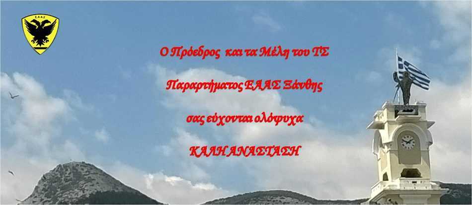 Ευχές Πάσχα 2018 31 Μαρ. 2018 | ΤΟΠΙΚΑ ΝΕΑ | 0 | ο Τοπικο Συμβούλιο Υπτγος ε.α Γεώργιος Γεωργιάδης, Πρόεδρος Ταξχος ε.α. Ιωάννης Κουτσαϊμάνης Αντιπρόεδρος Σχης ε.α Κωνσταντίνος Δημητριάδης , Ταμίας Ανχης ε.α Παπάγος Παπανικολάου, Γραμματέας Ανχης ε.α Θεόδωρος Αμαξόπουλος , Μέλος