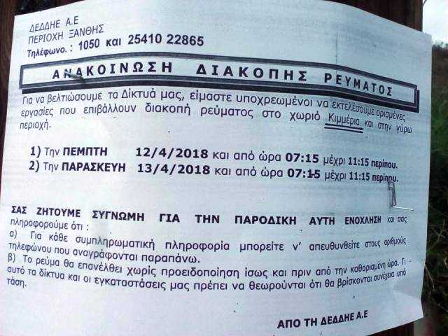 Η ΔΕΗ της Ξάνθης όπως δείχνουν τα πράγματα επιλέγει τον παλιό κλασικό τρόπο ενημέρωσης των πελατών της για διακοπή.