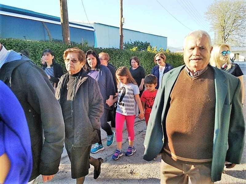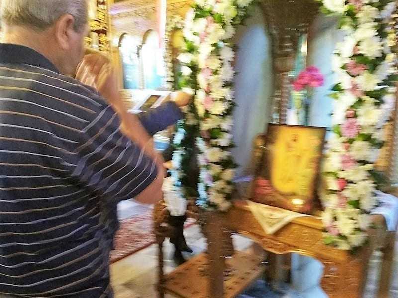 Όταν έφτασαν μπροστά στην εικόνα του Αγίου Γεωργίου που η οικογένεια είχε στο εικονοστάσι και αφού έψαλε ο πατέρας Ιωάννης Μαρέλης, κίνησε η πομπή των πιστών για τον Ιερό Ναό του Αγίου Γεωργίου συνοδεία ψαλμωδίας όπου και επέστρεψε στην θέση της στο ειδικό τέμπλο.