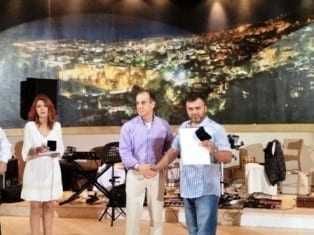 Ο Στέλιος Αρσενίου, παρουσία του Σεβασμιότατου χάρισε το βραβείο του στους γονείς του.