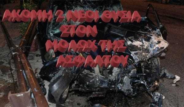 Δυστυχώς άλλοι δύο νέοι άνθρωποι θυσιάστηκαν στον Μολώχ της ασφάλτου πιθανών λόγω υπερβολικής ταχύτητας. Δύο νέοι άνθρωποι, θα είναι απόντες από την ζωή της περιοχής μας.