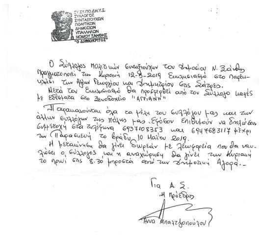 12 Μαΐου Εκκλησιασμός στον Ι.Ν. Αγίου Γεωργίου ΣΑΤΡΩΝ ( Ανάδοχος: Σύλλογος Συνταξιούχων Δημ. Υπαλλήλων Ξάνθης) 8 Μάι. 2019 | ΚΟΙΝΩΝΙΑ | 0 |