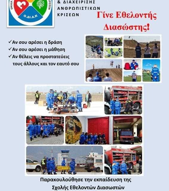“Θα θέλαμε να σας γνωρίσουμε ότι η Ομάδα Διάσωσης & Διαχείρισης Ανθρωπιστικών Κρίσεων (ΟΔΙΑΚ), ξεκίνησε της εγγραφές όσων ενδιαφέρονται να γίνουν Εθελοντές Διασώστες στην πόλη της Ξάνθης μέσα από τη λειτουργία Σχολής Διάσωσης”.