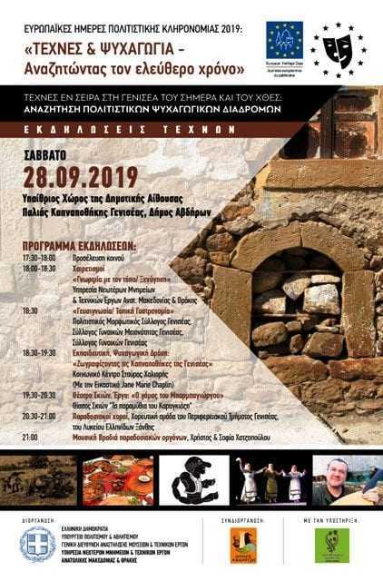 Εκδηλώσεις εορτασμού των Ευρωπαϊκών Ημερών Πολιτιστικής Κληρονομιάς (ΕΗΠΚ) 2019: