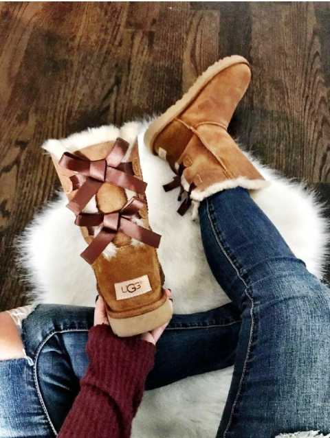 Οι ιδανικότεροι συνδυασμοί με τις μπότες ugg είναι τα σύνολα με κολάν και εφαρμοστά παντελόνια. Από πάνω επιλέξτε να φορέσετε ένα κοντό μποτάκι ugg για να κολακεύει περισσότερο τα πόδια. Ολοκληρώστε με ένα όμορφο χειμωνιάτικο αξεσουάρ όπως σκούφο, κασκόλ ή πασμίνα. Ακόμη, ο συνδυασμός με ένα φόρεμα ή μία φούστα με χαμηλά μποτάκια είναι πλέον μια κλασική́ αλλά συγχρόνως μοδάτη εμφάνιση.