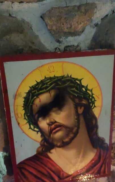 Αλλά κάψιμο με κερί τα πρόσωπα των αγίων στις εικόνες και η προσπάθεια μερικού εμπρησμού…ή ολικού… προσπαθώντας να καούνε τα χοντρά δοκάρια μας πάει αλλού…Ασέβεια προς όλους όχι μόνο στο θρησκευτικό συναίσθημα αλλά και στο φυσικό περιβάλλον αφού θα κινδυνέψει από πυρκαγιά και το περιαστικό δάσος αλλά και οικίες στην Παλιά Πόλη…
