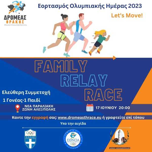 Εορτασμός Ολυμπιακής Ημέρας με το FAMILY RELAY RACE στην Αλεξανδρούπολη, στο Σάββατο 17/6/23