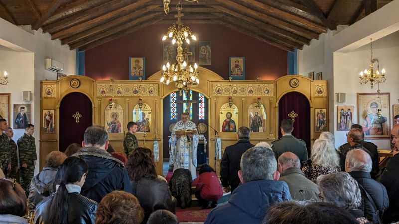 Τη Θεία Λειτουργία τέλεσε ο Πρωτοπρεσβύτερος π. Γεώργιος Σπάρταλης, συνεπικουρούμενος στο ψαλτήρι από χορό ιεροψαλτών με επικεφαλής τον Στρατιωτικό Ιερέα του Δ΄ΣΣ π. Νικόλαο Κατσαρέλη.