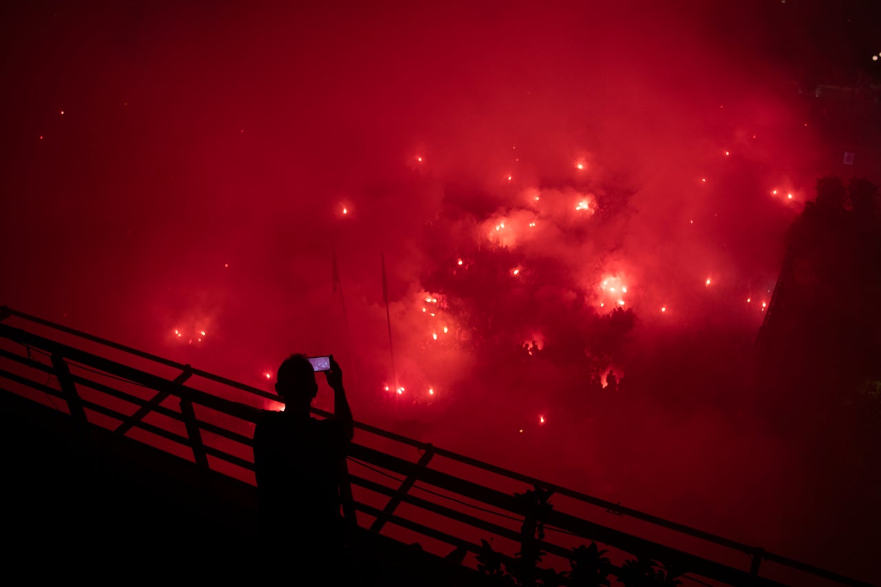 Καπνογόνα, βεγγαλικά, συνθήματα και ξέφρενοι πανηγυρισμοί συνέθεσαν το παζλ μιας γιορτής με χρώμα αμιγώς ερυθρόλευκο.