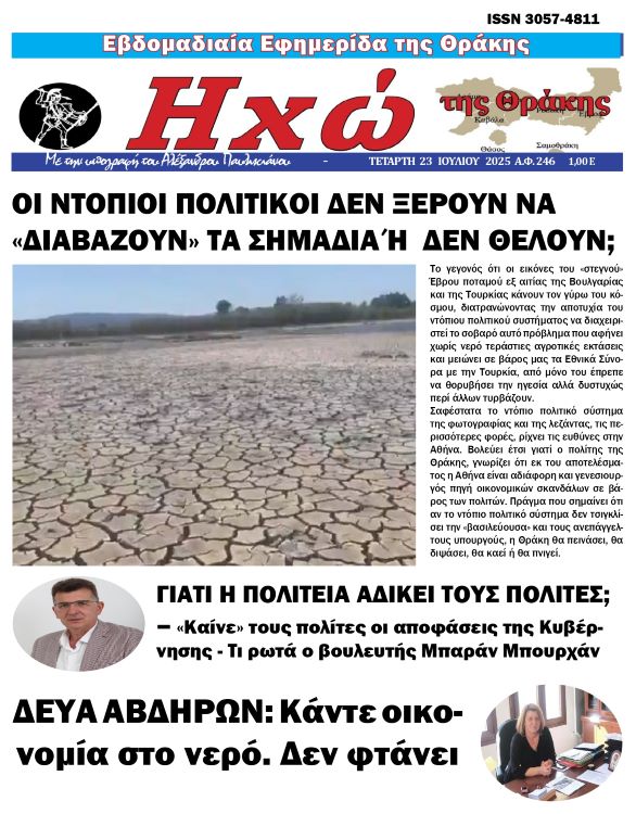 ΠΡΩΤΟΣΕΛΙΔΟ ΕΦΗΜΕΡΙΔΑ “ΗΧΩ ΤΗΣ ΘΡΑΚΗΣ” ΤΕΤΑΡΤΗ 23 ΙΟΥΛΙΟΥ 2025