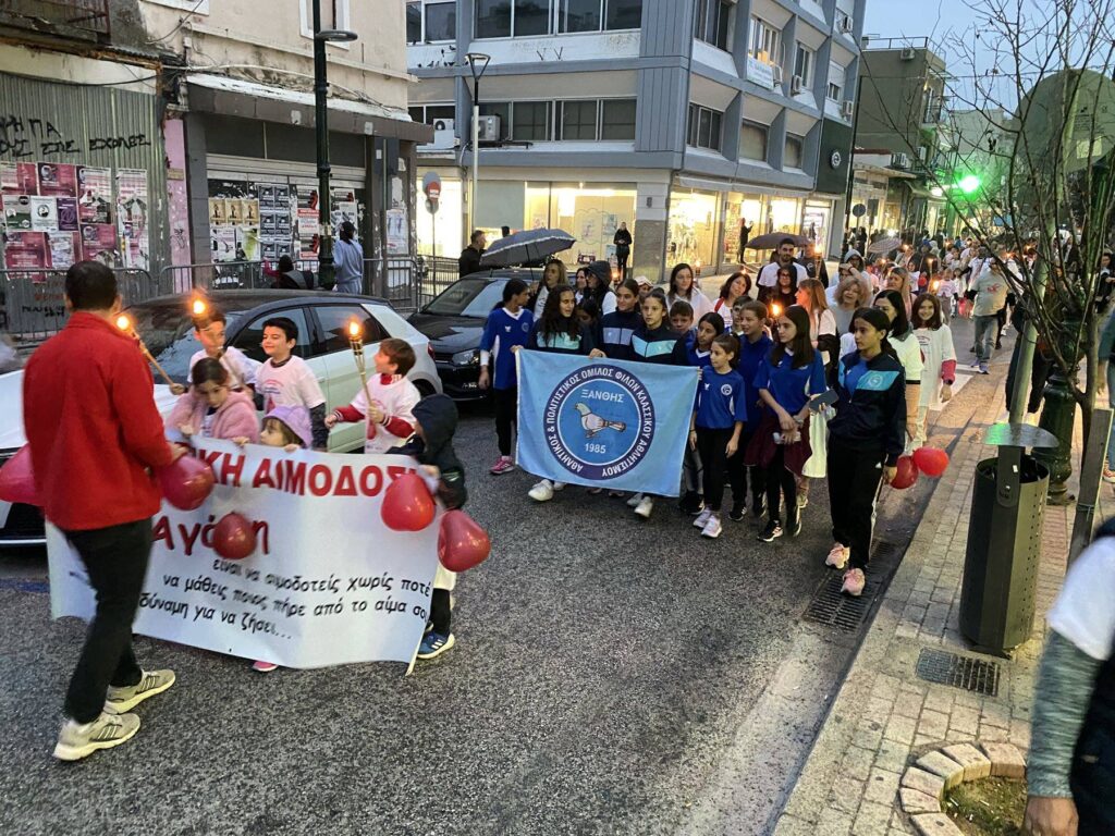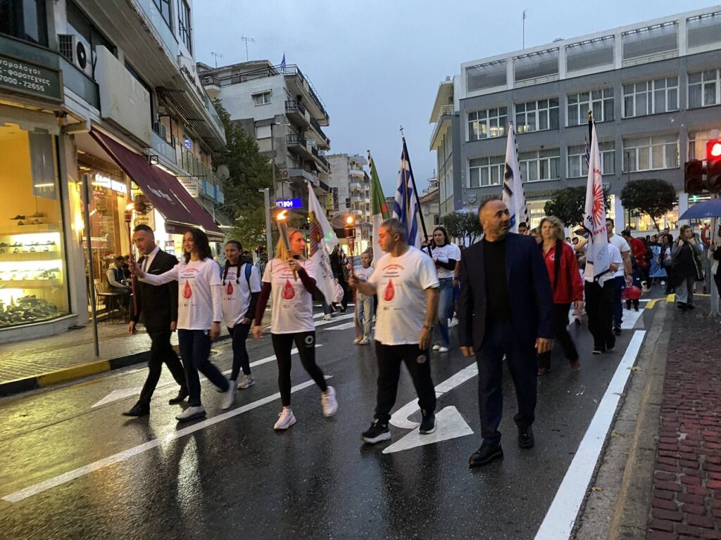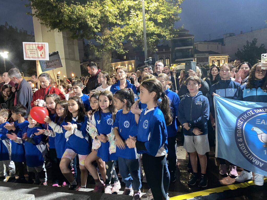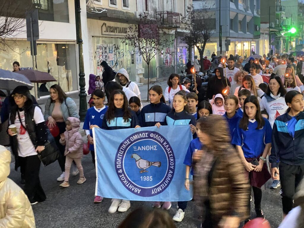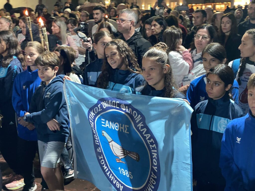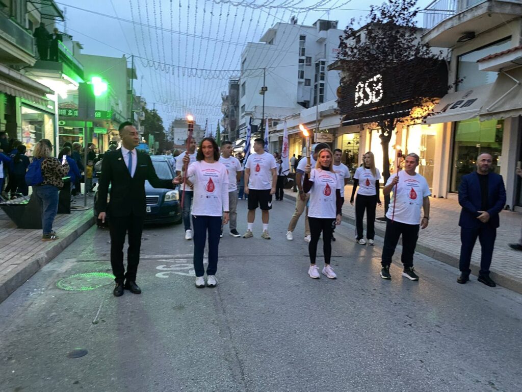 Λίγο μετά τις 6:30 το απόγευμα, η φλόγα έφτασε με πομπή στην κεντρική πλατεία της Ξάνθης, όπου την υποδέχθηκαν δεκάδες πολίτες, εθελοντές και εκπρόσωποι συλλόγων. Οι τρεις βωμοί της εκδήλωσης άναψαν από τρεις σημαντικές μορφές του ελληνικού αθλητισμού:την Ολυμπιονίκη Κατερίνα Θάνου, τον πρωταθλητή Ευρώπης στα 60μ Άγγελο Παυλακάκη –που κατάγεται από την Ξάνθη– και τη χρυσή πρωταθλήτρια στα 200μ Στέλλα Ορφανίδη, τη νέα ελπίδα του ξανθιώτικου στίβου.Το παράλληλο καλλιτεχνικό πρόγραμμα της βραδιάς πλαισίωσαν τοπικοί πολιτιστικοί σύλλογοι και φορείς, μεταξύ των οποίων ο Χορευτικός Όμιλος Ξάνθης, ο Σύλλογος Ποντίων Ν. Ξάνθης, οι Ποντίων Χορευτές “Τραντελλένες”, ο Πολιτιστικός Σύλλογος Κιμμερίων “Ο Αμφέραος”, ο Πολιτιστικός Σύλλογος Μάνδρας, ο Σύλλογος Ιεροψαλτών Ξάνθης “Γρηγόριος ο Πρωτοψάλτης” και η Φιλαρμονική του Δήμου Ξάνθης, χαρίζοντας μια ξεχωριστή καλλιτεχνική νότα στη γιορτή.Ιδιαίτερα συγκινητική στιγμή της βραδιάς ήταν η έκπληξη που επιφύλαξε ο πρόεδρος του Συλλόγου Εθελοντών Αιμοδοτών Ξάνθης, κ. Γιάννης Παπαχρόνης, όταν παιδιά από τον Σύλλογο “Κένταυρος” τραγούδησαν για την αιμοδοσία, στέλνοντας ένα μήνυμα ζωής και αλληλεγγύης.