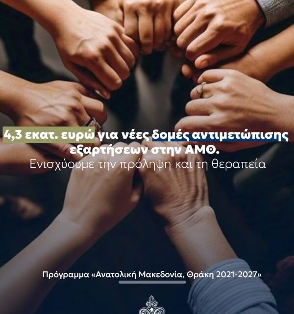 Νέες Δομές Αντιμετώπισης των Εξαρτήσεων σε Ξάνθη, Καβάλα και Κομοτηνή —4,3 εκ. ευρώ στον Εθνικό Οργανισμό Πρόληψης Αντιμετώπισης Εξαρτήσεων από το Πρόγραμμα «Ανατολική Μακεδονία, Θράκη 2021-2027» της Περιφέρειας ΑΜΘ
