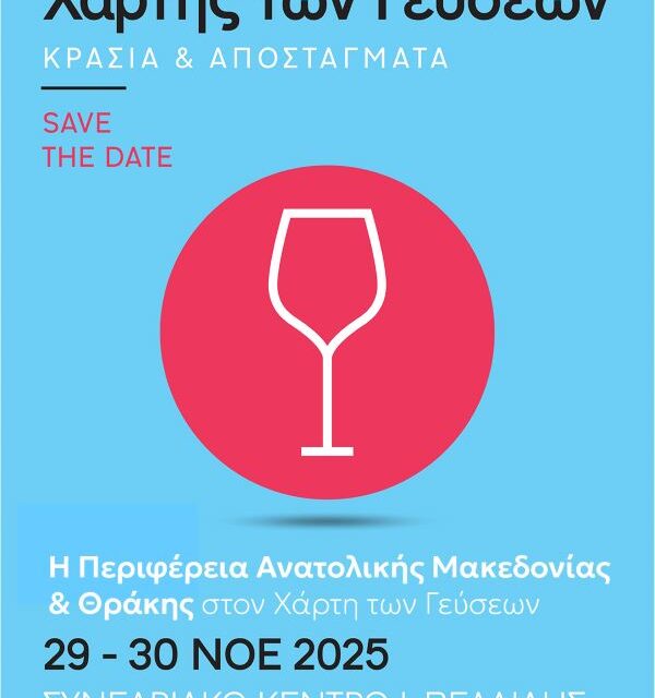 Στο πλαίσιο της συμμετοχής της ΠΑΜΘ στον «Χάρτη των Γεύσεων» θα λάβει χώρα ειδική Press Conference το Σάββατο 29 Νοεμβρίου 2025, ώρα 12:30 μ.μ., στην αίθουσα Colombus του συνεδριακού κέντρου, όπου θα παρουσιαστούν τα κρασιά, οι τοπικές ποικιλίες, οι παραγωγοί και η σύγχρονη οινική ταυτότητα της Ανατολικής Μακεδονίας και Θράκης.